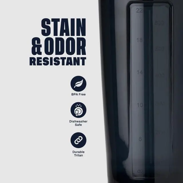 28-ounce capacity (note: measurements only go to 22 ounces) sleek and durable Pro28 shaker cup for mixing protein shakes, smoothies, and supplements