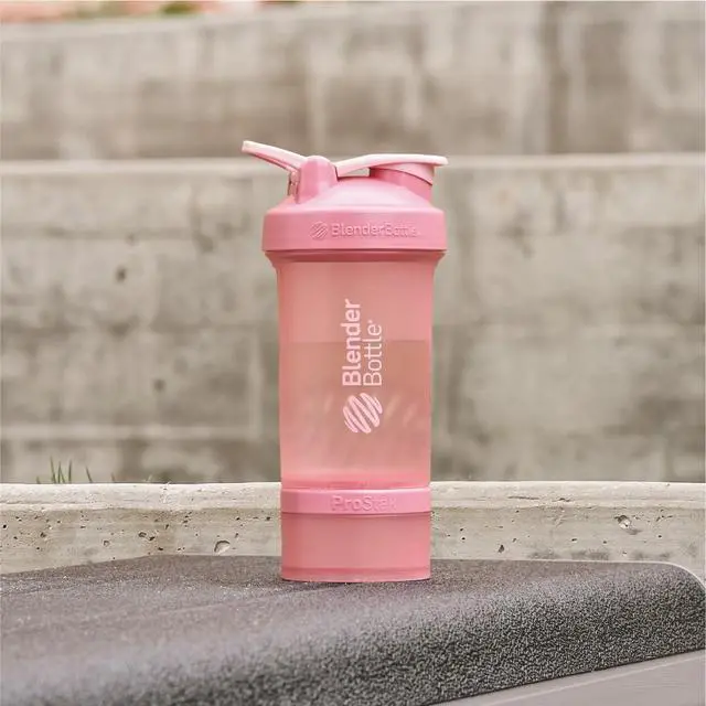 Shaker Bottle with Pill Organizer and Storage for Protein Powder, Classic V2 ProStak System, 22-Ounce, Rose Pink