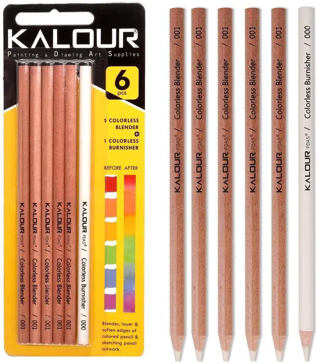 Kalour Colorless Blender and Burnisher Pencils Set(6 pencils Total)