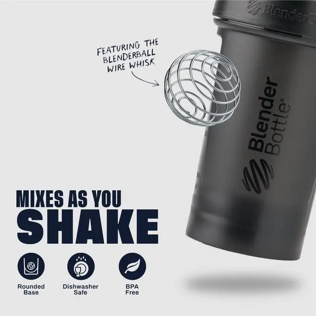• Patented mixing system uses 316 surgical-grade stainless steel BlenderBall wire whisk found only in BlenderBottle brand shaker cups