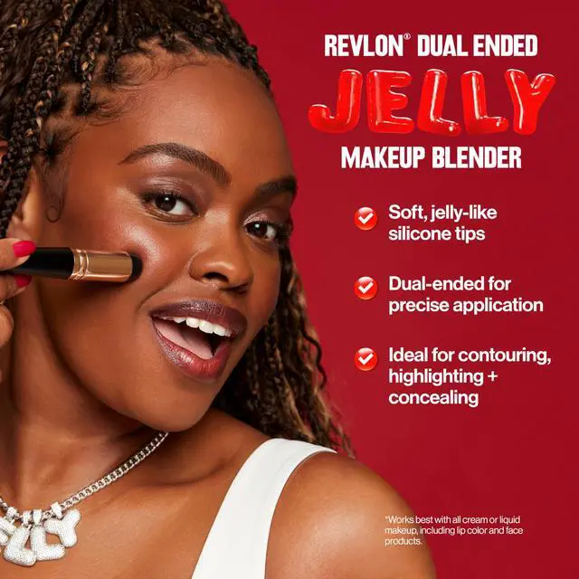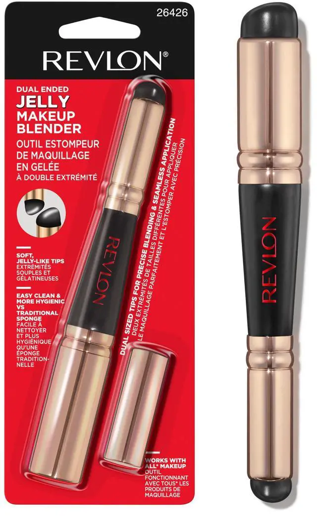 - Revlon Dual Ended Jelly Makeup Blender is the first dual-ended makeup blender* designed for precise application—with soft, jelly-like silicone tips that mimic the natural feel of your own fingertips.