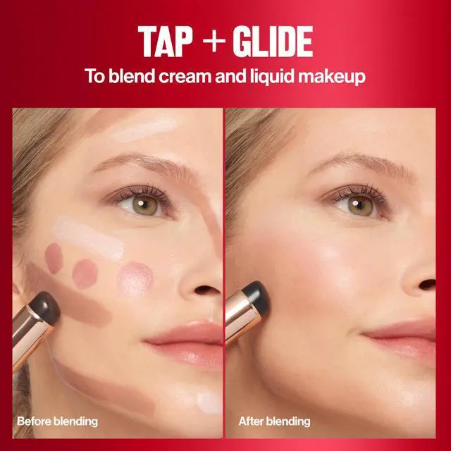 Dab a tiny amount of cream or liquid makeup onto lips, eyes or face, then blend. Build as desired. Use the large precision tip on cheeks, jawline and forehead, and the small precision tip on lips, eyes and nose. It also blends already-applied makeup.