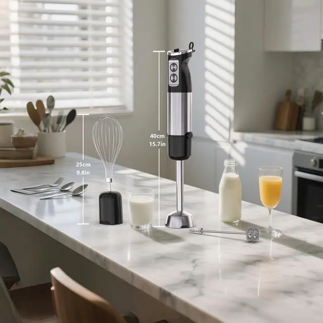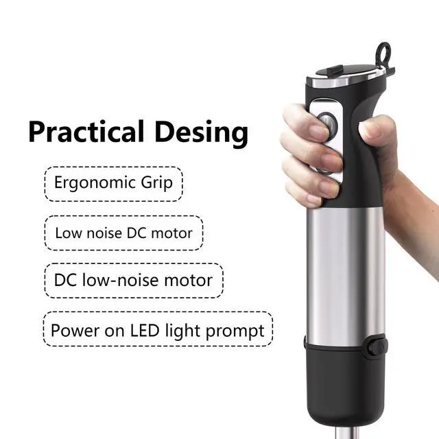 1000W Powerful Motor & Stainless Steel Body: Equipped with 1000W high speed motor, the immersion blender handheld ensures efficient blending to quickly create delicious smoothies, soups, sauces, juices, and more, say goodbye to chunky sauces and batters, and the stainless steel body is durable