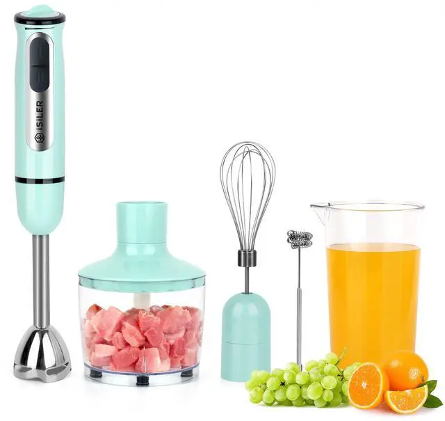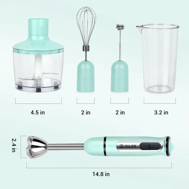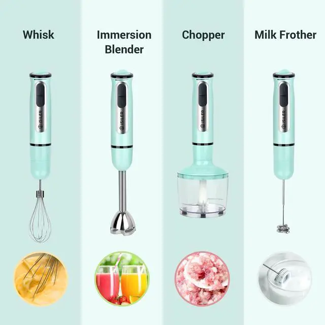 With the multifunctional 5-in-1 hand blender from iSiLER, all your needs for food blending are perfectly covered. Its high-efficient 500 Watt motor , durable 304 stainless steel blades and 8-speed settings combine high performance with durability. The quick connection for the 5 included attachments delivers ultimate flexibility with ease.