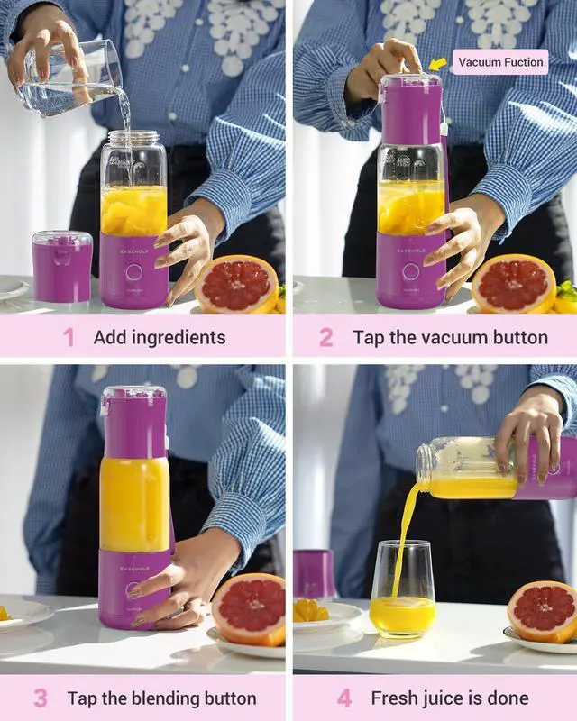This portable blender’s built-in Vacuum Function removes oxygen before blending—no stale drinks! It locks in fruit sweetness, preserves nutrients, and creates smooth textures for smoothies, baby food, or slushies. Perfect for on-the-go fresh blends, matching this USB-rechargeable, self-cleaning mini blender’s convenience.