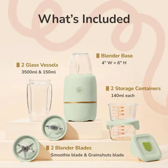 Fresh Blends Every Day - Two borosilicate glass cups that resist odors and staining are included in this baby blender, helping you prepare purees, smoothies, and baby food that stay clean and fresh.
