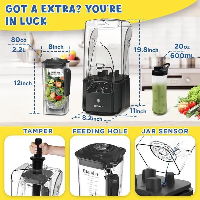 Quiet Blender CRANDDI soundproof quiet blender is designed with a thinckened shield cover to reduce noise when blending. The noise reduction technology makes blending a quieter and more pleasant experience