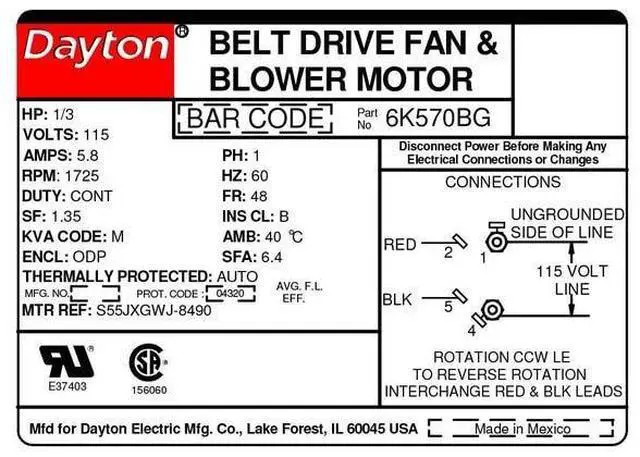 Fan and Blower Motor, Single Phase, Motor Design Split-Phase, 1/3 hp HP, Nameplate RPM 1, 725 RPM, No. of Speeds 1, Voltage 115V AC, 5.8 A Full Load Amps, 48 Frame, 60 Hz Hz, Motor Service Factor 1.35, Motor Thermal Protection Auto, Ins. Class B, Max. Ambient Temp. 40 Degrees C, Duty Cycle Continuous, Motor Shaft Rotation CW/CCW, Motor Enclosure Design Open Drip Proof, Motor Mounting Type Cradle Base, Motor Mounting Position All Angle, Motor Frame Material Steel, Shaft Dia.