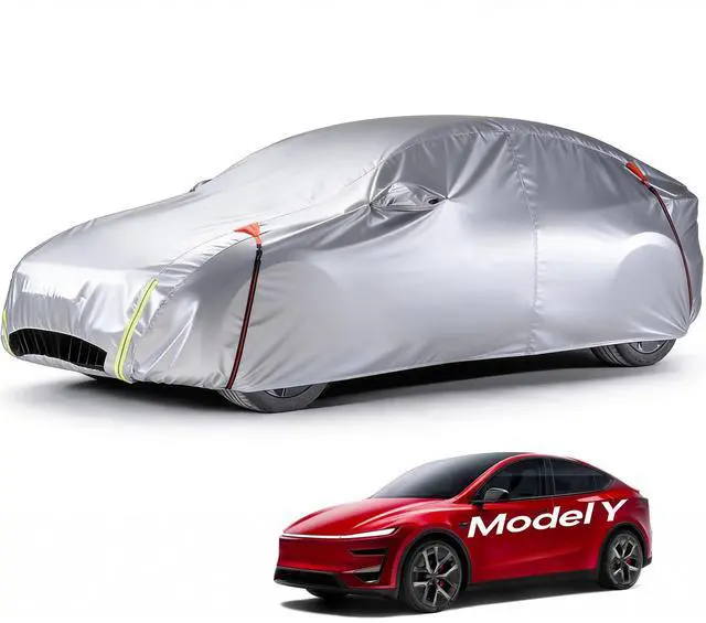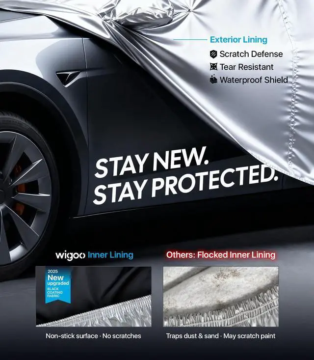 Wigoo Tesla Model Y Car Cover Accessories (20202026), Custom Fit All-Weather Outdoor, Waterproof UV Sun & Heat Protection, Ventilated Design, Windproof, Smooth Paint-Safe Lining, Charging Port Zipper
