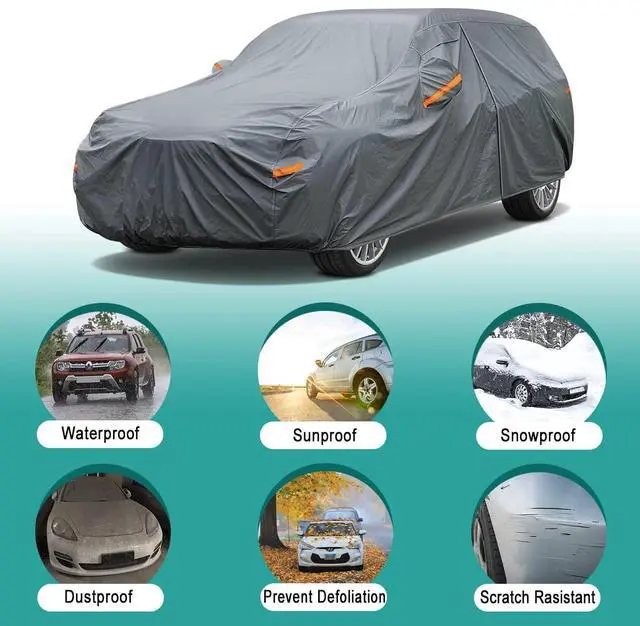 Premium MaterialGUNHYI full exterior cover is suitable for use in all seasons. 1- Made of high-quality material vinyl, better waterproof, more wear-resistant and tear-resistant. 2- It has good sunproof and anti-ultraviolet effect, the vehicle can keep cool in hot weather. 3- The inner lining is upgraded soft cotton that would protect vehicle paint better. All Weather ProtectionGUNHYI heavy duty car cover suitable for indoor and outdoor use, can effectively protect your vehicle from sun, uv-rays, dust, snow, fallen leaves, industrial pollution, bird droppings, pollen, animals, acid rain and extreme weather. Unique Design1- Breathable vents effectively prevent moisture accumulation and keep dry. 2- Thickened material, Mirror pockets, Three windproof straps at front, middle and rear, which can prevent the car cover from being blown away in strong winds. 3- Driver door zipper design for easy access. 4- Comes with a microfiber towel that you can use to clean your car, because if there is sand on the surface of the car before use, it may damage the paint. Model ChoiceGUNHYI automobiles cover is suitable for Hatchback, Length 164 to 177 inch (Not for Sedan SUV Jeep). For example--Hyundai Veloster/Kona, Ford Fiesta, Nissan Leaf, Kia Soul, Volkswagen Golf, Chevrolet HHR, Chrysler PT Cruiser, Mini Cooper Clubman/Countryman, Honda Civic Hatchback, Toyota Corolla Hatchback, Ford Focus Hatchback, Subaru Impreza Hatchback etc. What You Get1pcs GUNHYI Premium Car Cover, 1pcs Microfiber Towel, 1pcs Storage Bag and 12 Months Warranty. We are committed to our products and services, if you have any questions during use, please feel free to contact us and we will provide you with a satisfactory solution!