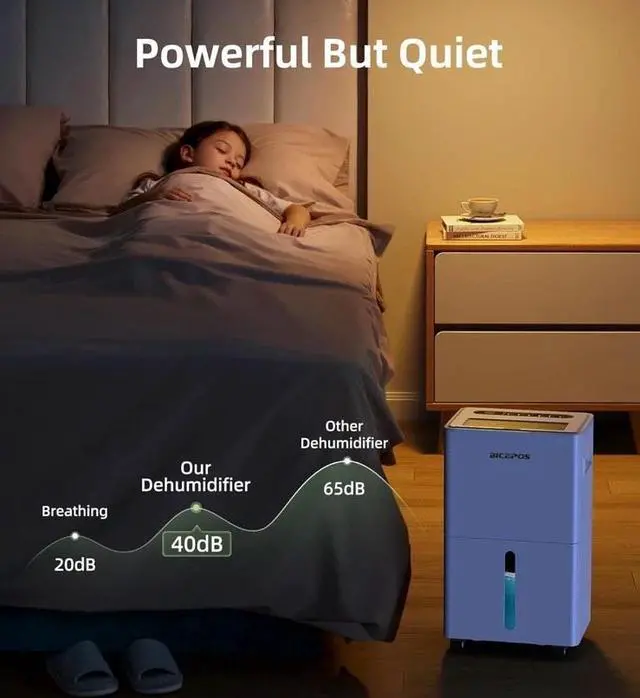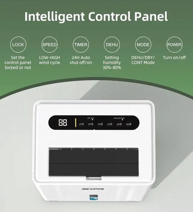 Smart Dehumidifier Should Be Like This-The upgraded Bicepos basement dehumidifier utilizes advanced compressor technology, making it more compact yet highly efficient. It can remove up to 21 pints of moisture per day (at 95°F, 90% RH), making it perfect for spaces up to 1,500 sq. ft, including living rooms, basements, bedrooms, and offices. With an adjustable humidity range of 30% to 80%, it allows you to effortlessly maintain the ideal indoor humidity levels.
