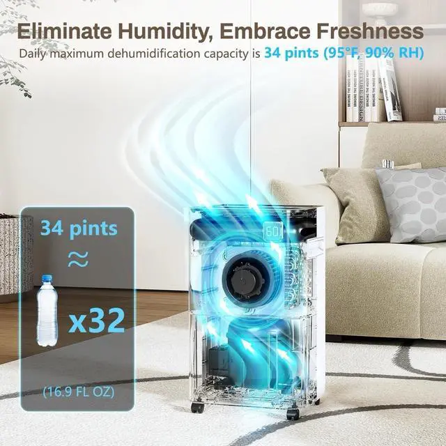 Capacity: 34 Pints/Day (95°F, 90% RH)