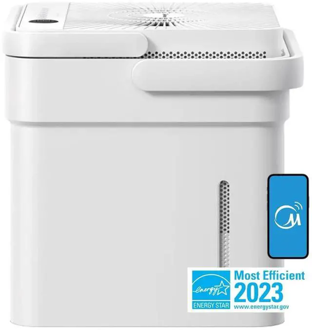 The Midea Cube 20-Pint Smart Wi-Fi Dehumidifier is a sleek white device made of plastic, designed to cover more than 215 sq ft of space. With the capability to connect to Amazon Alexa, this dehumidifier offers automatic shut-off for added convenience. It has a tank capacity of 20 pints and is suitable for use in basements or whole rooms, providing a compact and efficient solution for maintaining optimal humidity levels in spaces up to 2,000 sq ft.