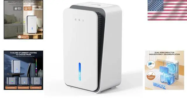 Experience a healthier, more comfortable environment with this versatile Dual-Action Dehumidifier and Aromatherapy unit. Designed to efficiently remove excess moisture using advanced semiconductor condensation technology, it helps prevent mold, reduce allergens, and eliminate musty odors, all while infusing your space with calming fragrances. Perfect for bedrooms, living rooms, bathrooms, or any area that benefits from controlled humidity and a pleasant atmosphere. This multifunctional dehumidifier is easy to use and highly practical. Simply select your desired modeHigh Speed for rapid moisture removal or Sleep Mode for quiet operationto customize your environment. The unit features an intelligent auto shut-off system that activates when the water tank is full or misplaced, ensuring safety and mess-free operation. Its portable, compact design (measuring approximately 7.95" x 5.9" x 13.85") makes it suitable for various spaces, including closets, RVs, basements, and more. Plus, it includes a drain hose for continuous use without needing frequent emptying. Enjoy personalized comfort with ultra-quiet operation below 45dB and a soothing 7-color LED lighting system, which can be set to a static color, dynamic cycle, or turned off completely for a dark, peaceful sleep environment. The ergonomic handles make it easy to move, while the sleek appearance adds a modern touch to any space. Whether you want to combat humidity, add aromatherapy, or create a calming ambiance, this dual-action dehumidifier is a practical, stylish solution for your home or office.