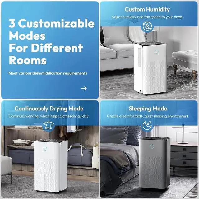 2000 Sq.ft Dehumidifier for Basement, LUKO 30 Pint Dehumidifier with Drain Hose