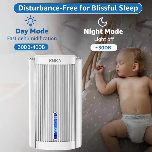 SLEEP WELL: Thanks to advanced semiconductor technology, in sleep mode, the small bathroom dehumidifier's noise level is as low as 30 decibels, which will not keep you awake at night, and the portable dehumidifier lights will automatically turn off.