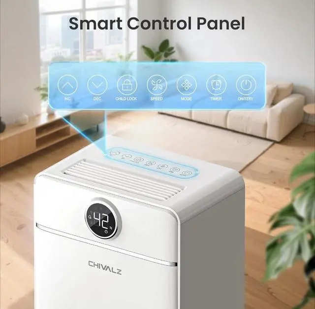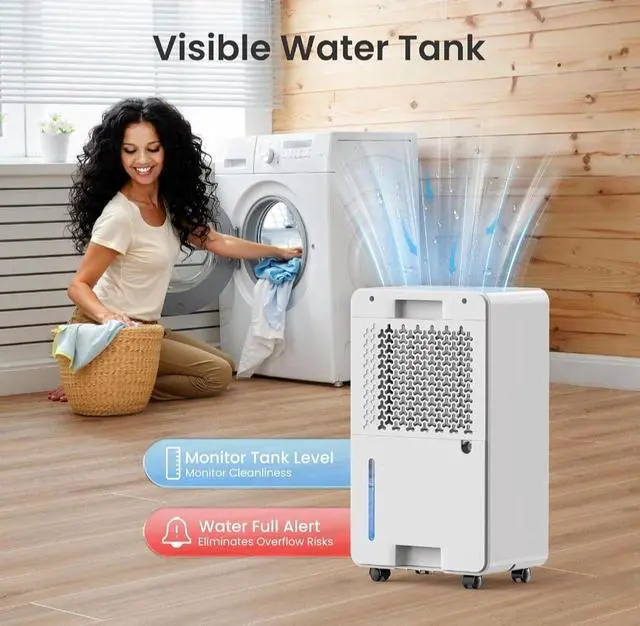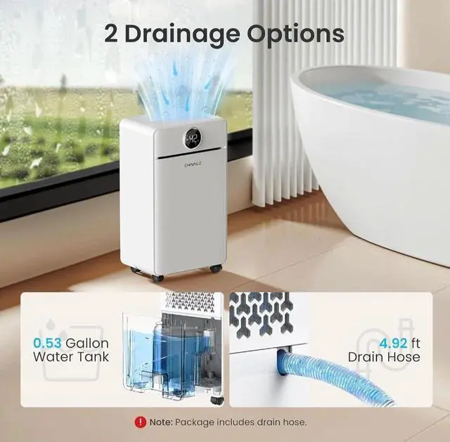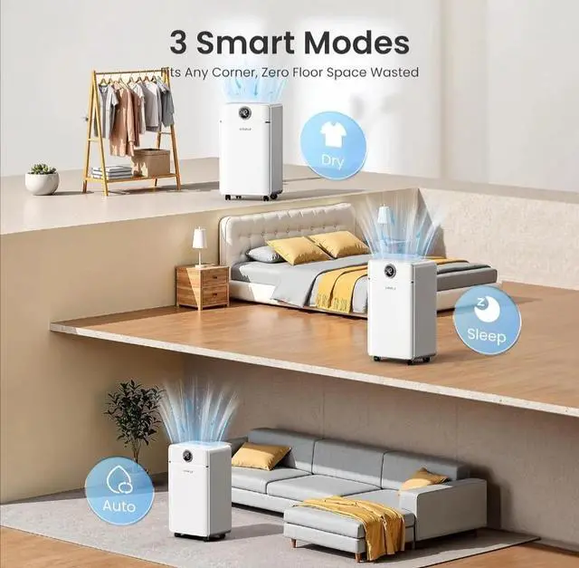 1800 Sq.Ft Dehumidifier for Basement, Quiet Dehumidifier for Home, Bedroom, Bathroom, Humidity Display, with Drain Hose, Auto Shut Off, 3 Modes, Timer, Auto Defrost, Child Lock, White 1Pack