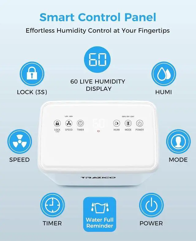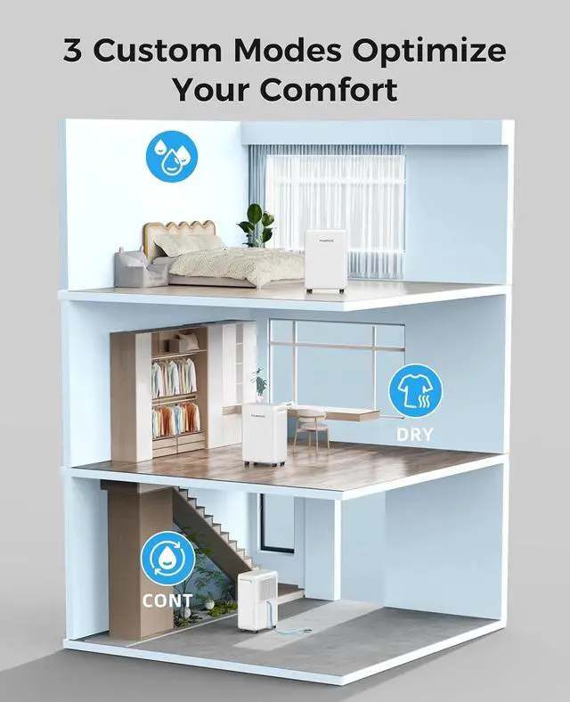 Powerful Moisture Control for Every Room - Our powerful basement dehumidifier removes up to 30 pints of moisture per day for rooms up to 2000Sq. Ft (under 95°F, 90%RH). Perfect for basements, living rooms, bedrooms, bathrooms, kitchens, RVs, and offices, it maintains a healthy 35%-55% humidity level effortlessly, and cutting costs bills year-round. Enjoy a fresher, more comfortable home with optimized air quality