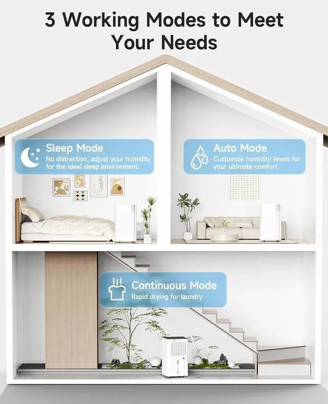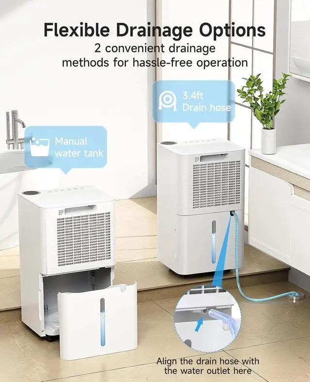 2500 Sq.Ft Dehumidifier for Basement with Drain Hose, 34 Pints Dehumidifiers for Home Large Room Bathroom Bedroom,3 Modes, Adjustable Humidity Control, Timer, Auto Defrost, Sleep Mode