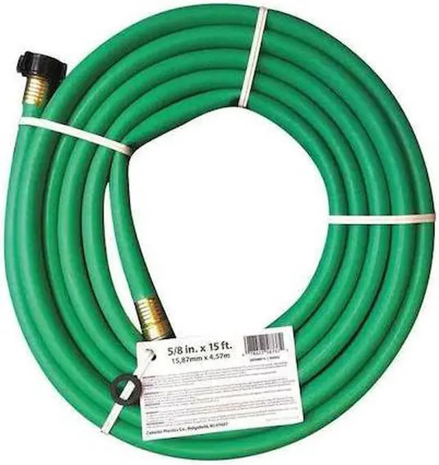 California Proposition 65: This product contains a chemical known to the State of California to cause birth defects or other reproductive harm. Item Water Hose, Features Contains Recycled Materials, Crushproof Connection, Garden Hose Type Water Hose, Hose Color Varies, Hose Configuration Coupled Assembly, Hose Cover Material PVC, Hose Fitting A Material Brass, Hose Fitting A Size 3/4 in, Hose Fitting A Type MGHT, Hose Fitting B Material Plastic, Hose Fitting B Size 3/4 in, Hose Fitting B Type FGHT, Hose Inside Dia. 5/8 in, Hose Length 15 ft, Kink Resistant Yes, Standards Labeled with Proposition 65 Warning