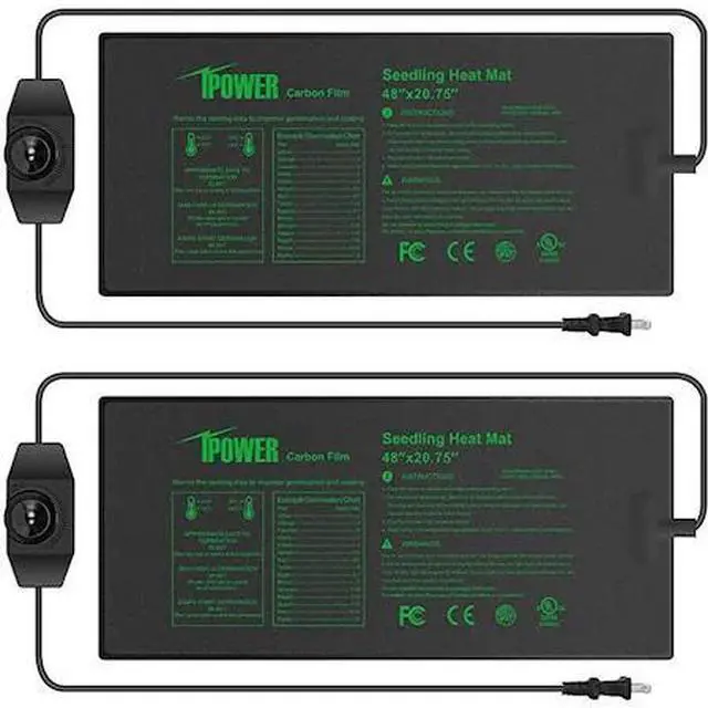 * Specifications: size: 48 x 20.75 inch; voltage: 120V; frequency: 60Hz; power: 105W. Package included: 1 pack seedling heat mat with temperature adjustable knob