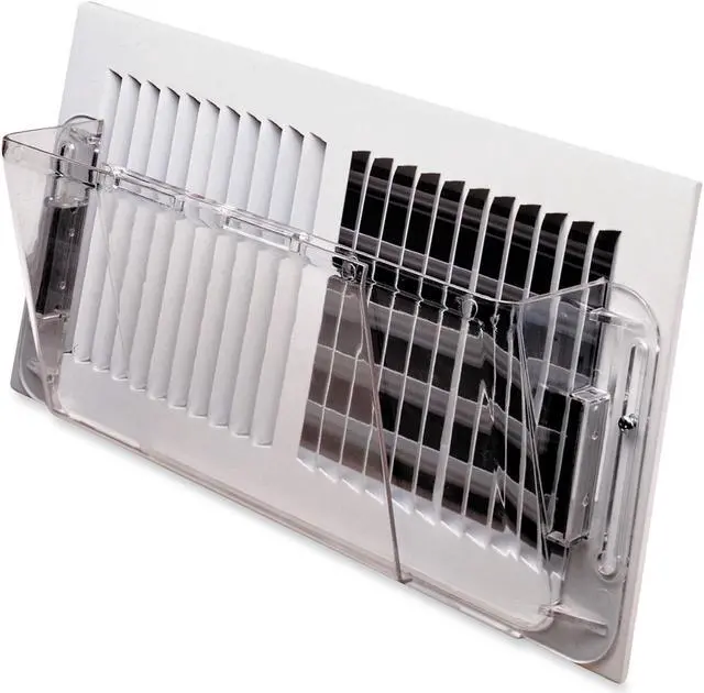 Deflecto 51 Air Deflector for Wall RegisterAdjusts 10-16Strong metal magnets attachedMolded-in screw slots for secure mounting to registerFor heating or coolingClear plasticDoes not include registerAir Deflector for Wall Register