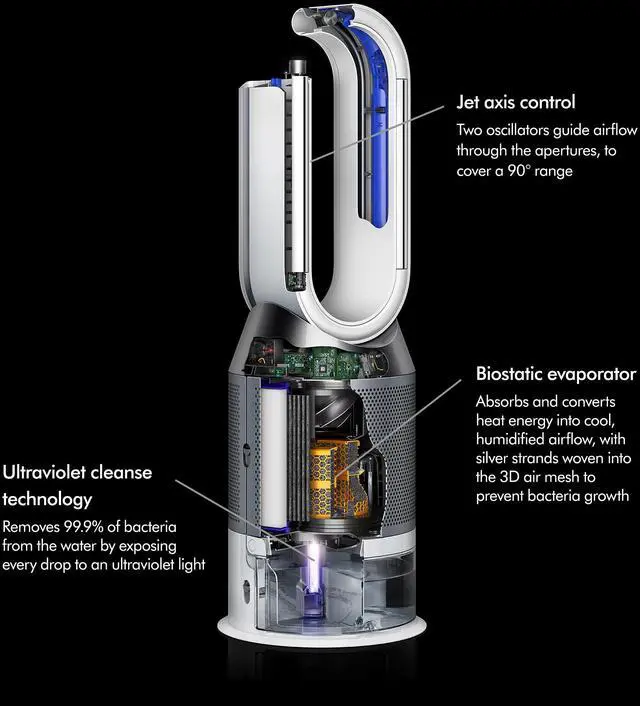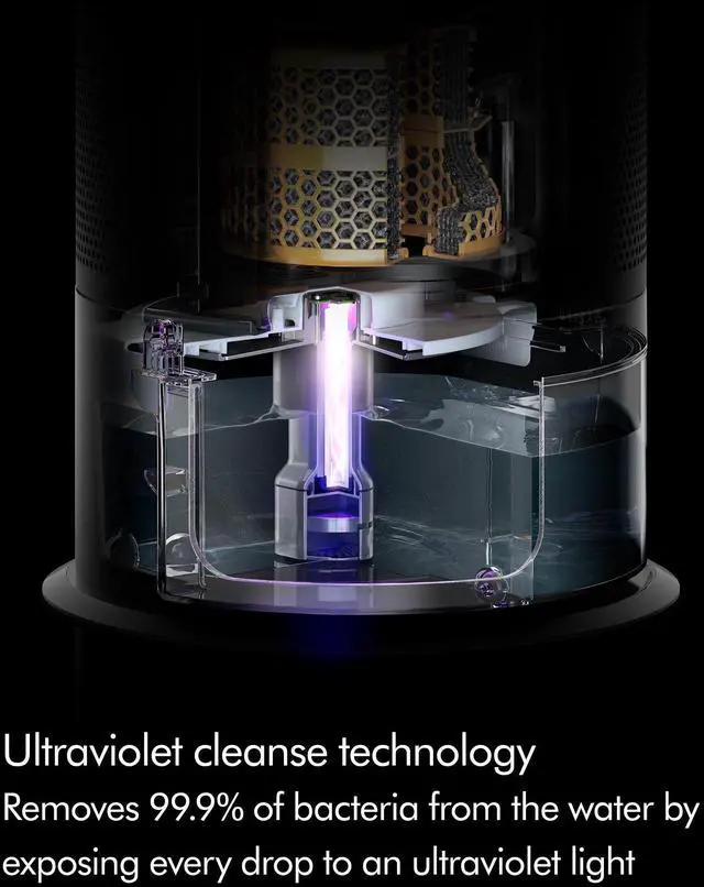 Removes: Dyson Ultraviolet Cleanse technology hygienically removes 99.9 % of bacteria in the water.