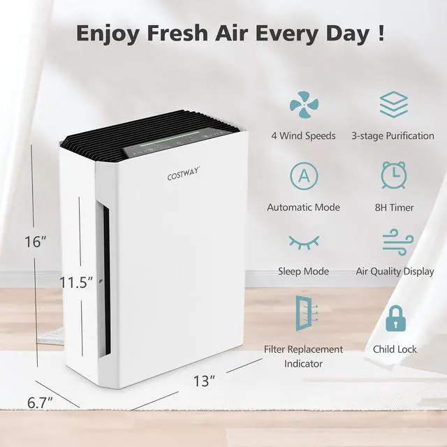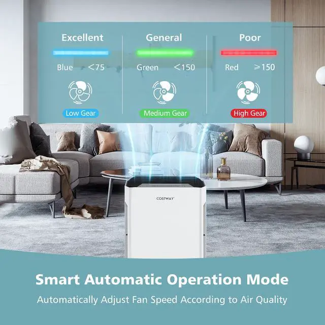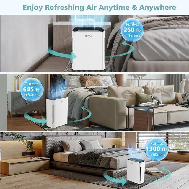 With updated H13 true HEPA filter, this air purifier is able to capture 99.98% of pollutants in the air. It can purify up to 260 ft² in 12 minutes. Besides, the fans peed can be altered at your will. And there is also a smart auto mode that will automatically adjust the fan speed based on the current air quality. Thus, refreshing air is always available. During the night, you can choose the sleep mode for a sound sleep without being disturbed. The air purifier will operate quietly at the sleep fan speed and all LED indicators will be off.