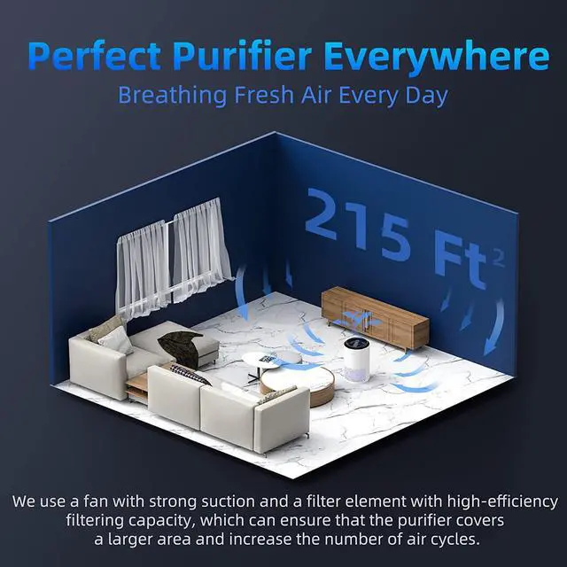 High Circulation Rate: With dual-channel and 360-degree air inlets technology, the AROEVE air purifier refreshes the air per hour in rooms up to 215 ft² / 20 m², covering every corner of the room to promote better health for you.