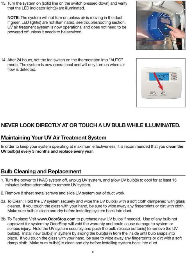 Energy Saving Airflow Sensor Turns Unit On Only When the HVAC System is Operating 1-16, 36 Watt UVC, 254NM Bulb, 120 Volt, 6 Foot Power Cord, 8" H x 8" L x 3" D