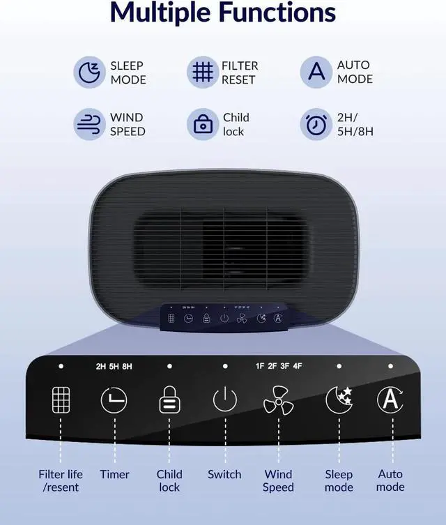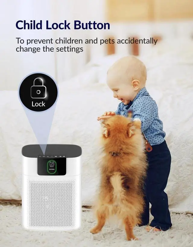 MULTIPLE FUNCTIONS: FETIONS HEPA filter air purifier has multiple functions. For example, you can select Wind Speed from 1 to 4. The automatic mode also can help to choose an appropriate wind speed according to the indoor air quality. If you are not at home, you can set a timer and choose the CHILD LOCK mode to ensure a fresh air environment in your home