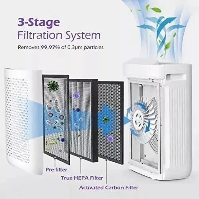 A Remedy for Allergic People: PUURVSAS true HEPA Air Purifier is engineered with a three-stage filtration system. It effectively removes up to 99.97% of dust, pollen, pet dander, mold spores, smoke, and other allergens as small as 0.3 microns from the air. Breathe easier and stay healthier.
