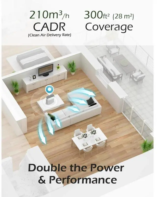Powerful Purification??: Boasting a CADR rate of 210 m³/h, PUURVSAS air purifier can effectively cover spaces up to 300 ft²/28 m², perfect for living room, bedroom, office, baby room, etc. The contemporary design fits nicely next to your sofa or under a window sill to become a part of your home.