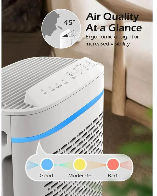 Intelligent Auto Mode & Smart Sensor: Built-in high-precision dust sensor detect the surrounding air quality and automatically change from the 4 speed fans to maintain a comfortable home environment. The smart sensor with indicator light let you know the air quality at a glance. Never need to guess if the air is clean or not.