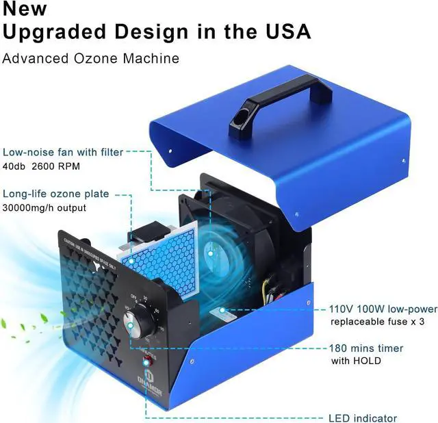 HIGH-PERFORMANCE OZONE PLATE- The upgraded honeycomb ozone plate has a max ozone output of 30, 000mg/h. This makes the ozone output more uniform and stable, the deodorization efficiency is 50% higher than ordinary ozone plates and Improves the lifetime of the ozone plate by up to 30, 000 hours.