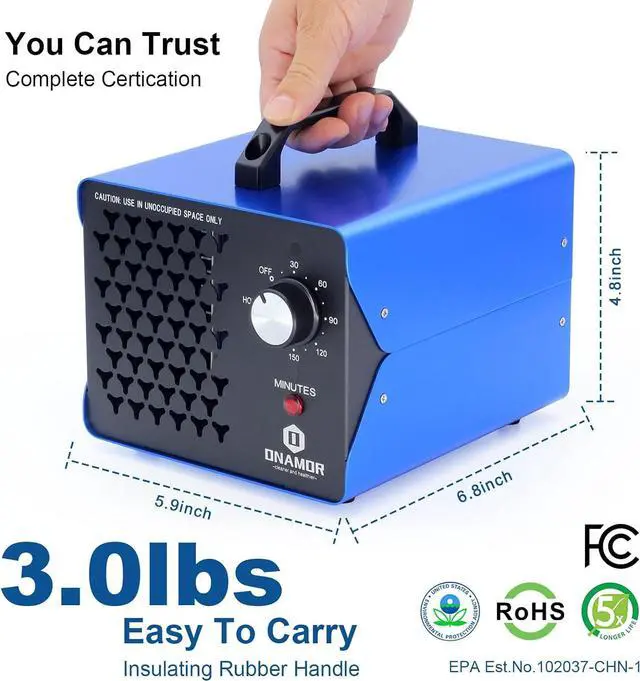 EASY TO OPERATE- Simply turn the knob to set the ozone production time and leave the area. The Ozonator time knob can be set up to 180 minutes or the HOLD setting to produce ozone continuously.
