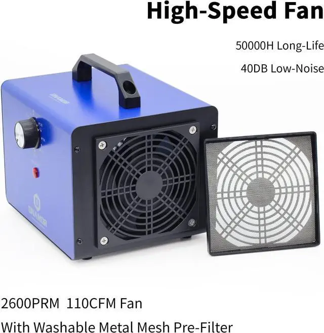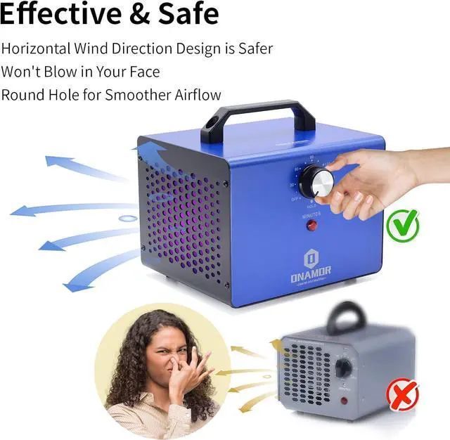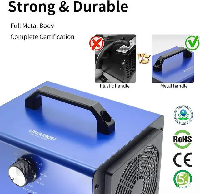HIGH-QUALITY- Our Ozone generators adopt a horizontal output design that ozone does not directly face your face when opened the generator. And the ozone generators adopt an exquisite all-metal shell, sturdy and durable, weighs only 5.8 pounds, and is equipped with a metal handle, which is convenient for you to carry with you. This is a great ozone generator for home, industrial, or commercial use.