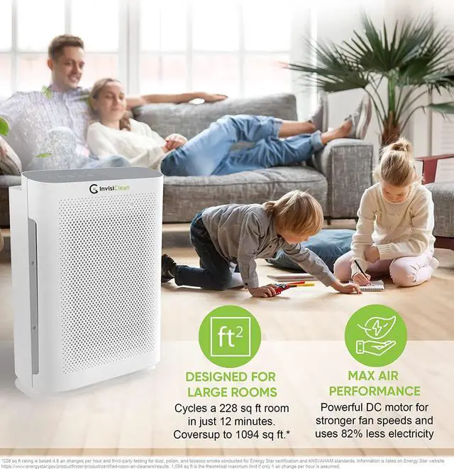 Powerful 4 in 1 Cleaning Action: InvisiClean Aura II Air Purifiers for bedroom filters and removes bacteria, odors, smoke, and other common household allergens. Our air cleaners for home eliminate common allergy triggers, including dust, pollen, and pet dander, so that you can breathe better air.