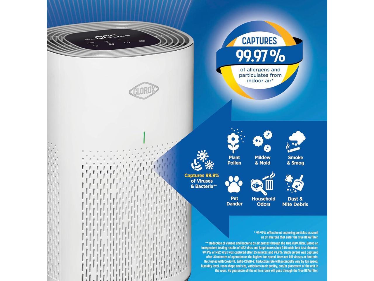 - CAPTURES 99.97% OF ALLERGENS AND PARTICULATES AND 99.9% OF VIRUSES AND BACTERIA. With the Medium Room Air Purifier, you can breathe easier. It has true HEPA filtration to capture 99.97% of particles as small as 0.1 microns and 2 additional filters to capture larger particles and odors..voltage : 120V