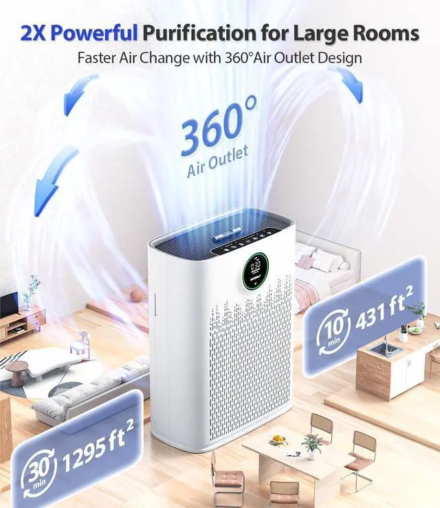 2X POWER FILTRATION FOR LARGE ROOMS: The 2X-Power Filtration system purifies the air twice per hour for large living areas Up to 1295 ft², capturing 99.97 % of airborne particles, ensuring a smoke-free, dust-free, aIIergen-free, and odor-free environment for you and your family!