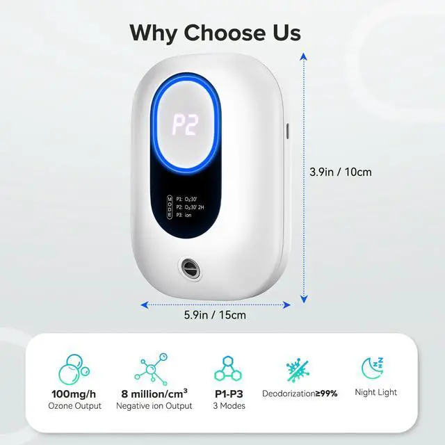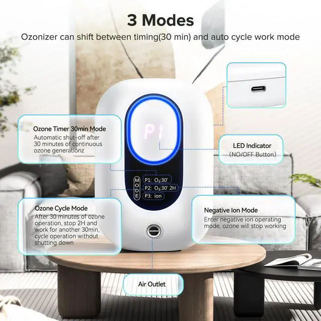 - Please Note: Ozone will naturally break down into oxygen molecules within 20 minutes. For safety reasons, make sure there are no pets in the room during the process. After deodorizing, open the window for 15-20 minutes. Please refer to the instruction manual for details. If you have any problems with your unit, please contact us as soon as possible for a free replacement