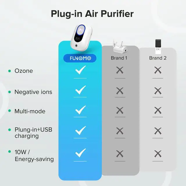 - No Filter & Save Money: Simply plug the air purifier into the power supply to generate ozone and negative ions, no need to change the filter. Effective elimination area is up to 60, wider than the ones on the market. Perfect for bedrooms, kitchens, laundry rooms, baby rooms, pet rooms, bathrooms, hotels, homes and closets