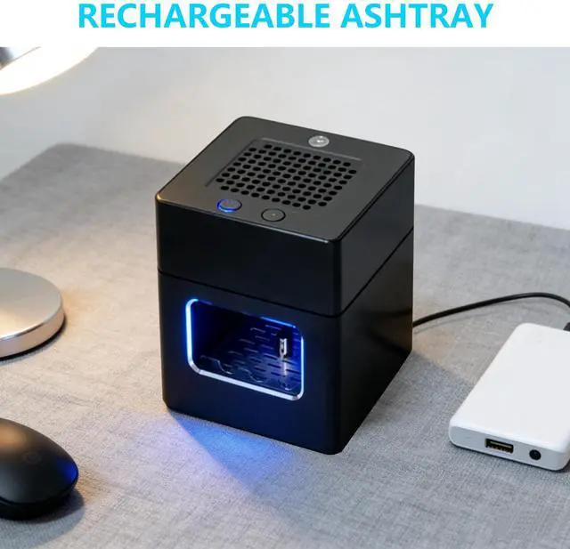 Autuveen Smokeless Ashtray with Cigarette Lighter, Multifunctional Air Purifier with HEPA Filter, Rechargeable Portable Smoke Removing Ashtray for Indoor