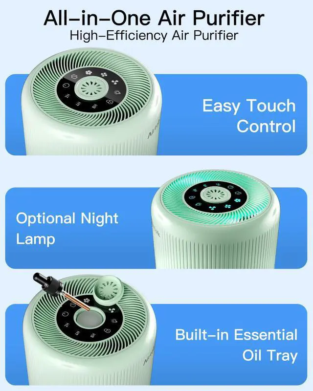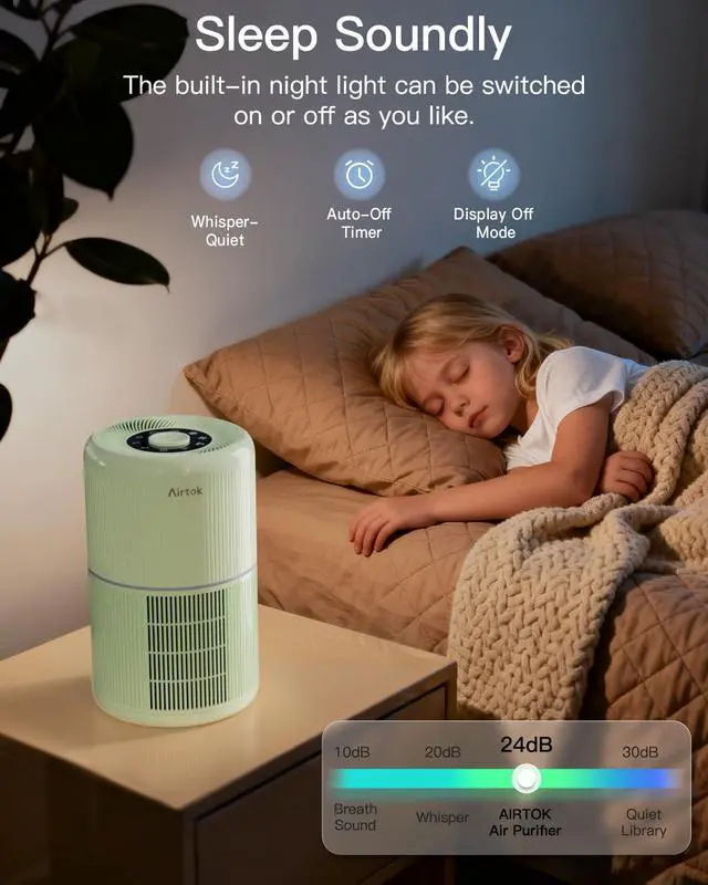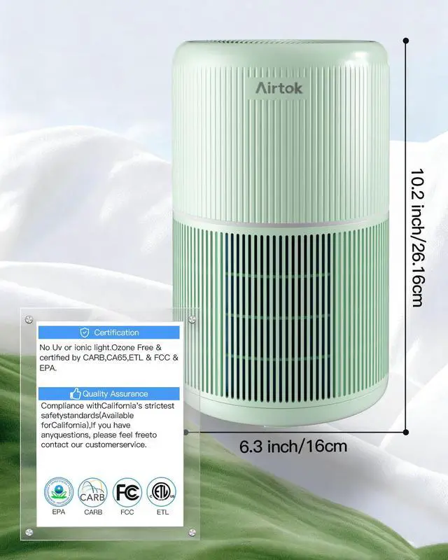 Make sure to remove any packaging material from the filter element before use, or the product will not function correctly. Package Contents: Air purifiers Host (2 PCS) Filter element (2PCS) (loaded into the host) Adapter (2PCS) (Put into the filter) Aroma Pads(24 pieces) operator manual Air Purifier delivers clean air for you and your family. Operating Parameters: - Product Model : AP0601 - Input Voltage (Adapter) : AC100-240V / 50-60Hz - Rated Voltage: DC24V / 1.0A - Rated Power: 10W - Clean Air Delivery Rate (CADR): 60 CFM, Air Purifiers for home circulates air 2 times per hour in a room up to 376sq ft (35m²), 5 times per hour in 183sq(17m²); - Noise Level: 25 - 50 dB - Dimensions: 6.3x6.3x10.2 inch - Product Net Weight1.3 lb / 0.6 kg - Filter Service Life: 3-4 months (depending on usage) - Filter Element Type: 4-in-1 True HEPA PP electrostatic electret melt-blown filter - Filtration Performance: Filters out 99.99% of particles as small as 0.1 microns Where is the power adapter? The adapter is inside the machine. Please take it out according to the following steps. 1.Separate the bottom cover from the machine. 2.Take the power adapter package out of the machine. How to replace filter? Filter Service Life: (90% of rated lifecycle of filter) of cumulative operation, the Filter Replacement indicator will light up to remind you to purchase a new filter and replace the used filter. 3-4 months (depending on usage) 1.Separate the bottom cover from the machine, Remove the old filter. 2.Install the new filter 3.After switching on the power, press and hold the filter replacement button for 3 seconds, and when you hear the beep, the installation is successful.