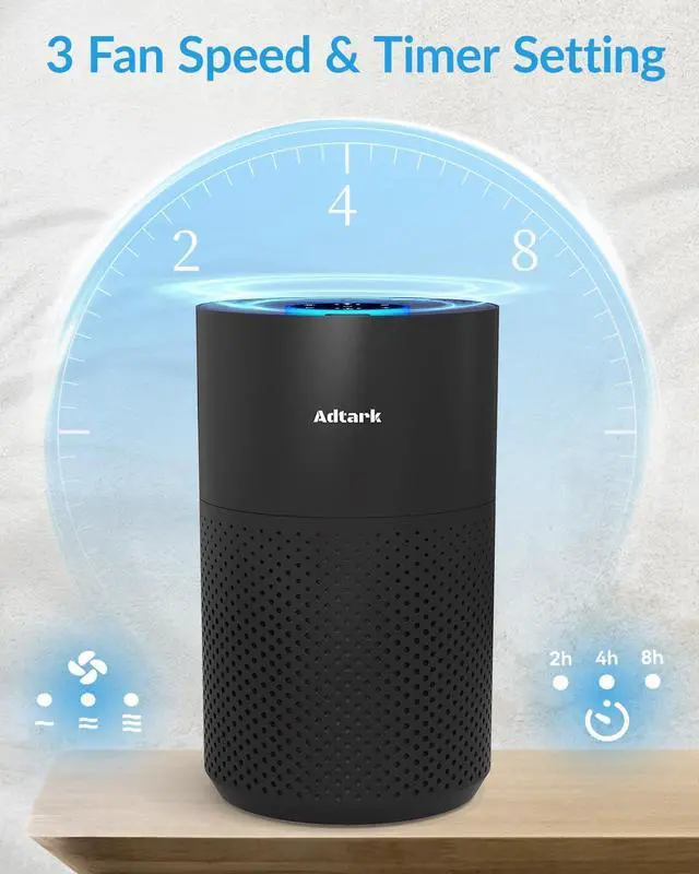 COMPACT & PORTABLE - This Adtark air purifier is compact in size, saves storage space, easy to carry and can be taken anywhere you go. The portable air purifier is widely used in many occasions, such as home, bedroom, studio, pet room, hotel, dormitory, RV and so on. With its stylish appearance, the small air purifier can also be given as a gift to your family or friends during holidays, such as Thanksgiving, Christmas, Valentine' s Day, Mother' s Day and Father' s Day.