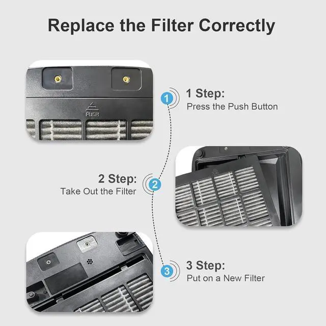 Easy filter replacement: When the purifier needs to replace the filter element, a reminder light will appear on the back of the machines. You just need to hold down the push button to change the filter