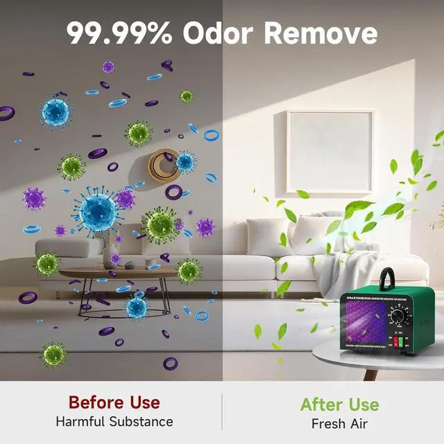 Durable&Portable: Portable ozone machine odor removal built with a rugged all-metal shell, yet weighs only 4.4 lbs. Comes with a foldable handle for easy carrying. CrazyOne ozone odor eliminator perfect for car, home, hotel rooms, garbage areas, or post-renovation odor control