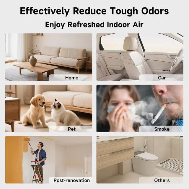 Powerful Ozone Output: Full-Space air refresh system, this ozone generator features an advanced 4-layer ceramic ozone plate and high-speed 3200 RPM fan, generating 120, 000mg/h ozone to reduce odors quickly. Covers up to 6, 000 sq. ftperfect for large room, home, office, car, or basement