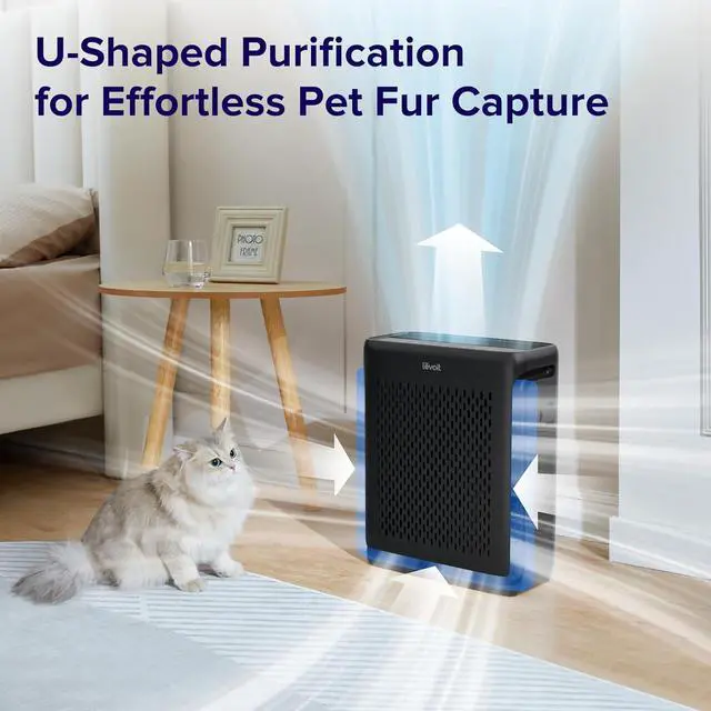 : Pet Mode cleans the air and conserves energy, while the wide U-shaped air inlet effectively traps airborne pet fur and large particles