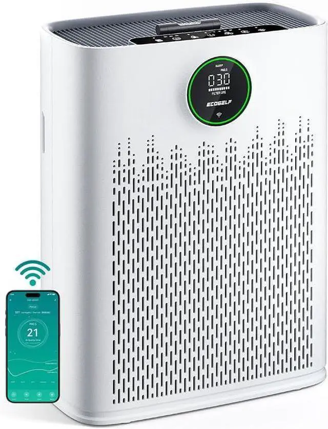 ECOSELF Smart Air Purifier for Home Large Rooms, with WiFi Control, Covers Up to 2400 Ft², Smart Mode, AQI Display, 22dB Sleep Mode & Aromatherapy with 2X-Power Filtration, HAP603WF, White